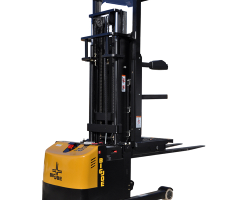 Utilizing many of the same reliable components as the J1, the J2 Mid Level Order Pickers come in two configurations. The J2-144 can elevate an operator to 150″ and attain fork elevations of 144″. The J2-192 can elevate an operator to 198″ and attain fork elevations of 192″. The J2 Mid Level Order Pickers require a tether and harness to be worn and come with both an overhead guard and pallet clamp. All J2 vehicles offers travel speeds up to 4.5 mph at ground level with speed reduction based on elevation to slow speed at maximum height.