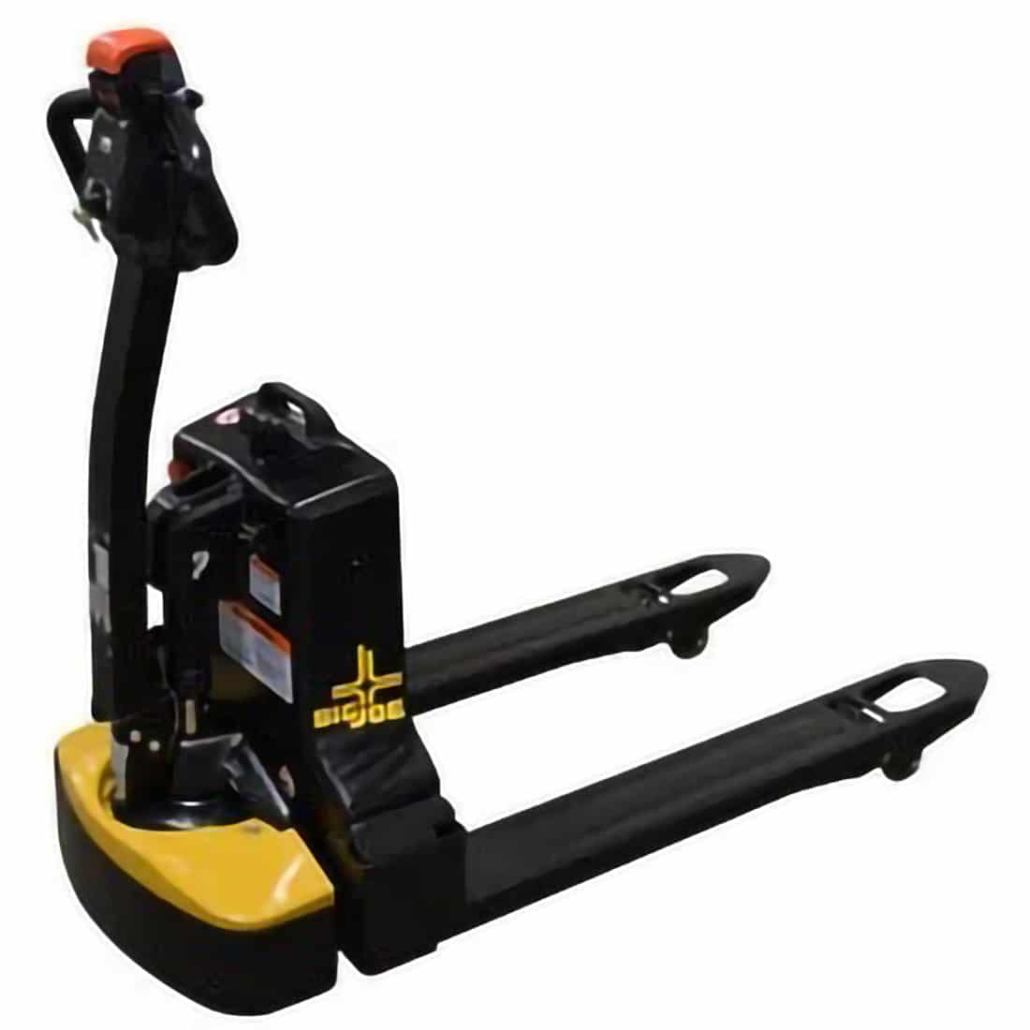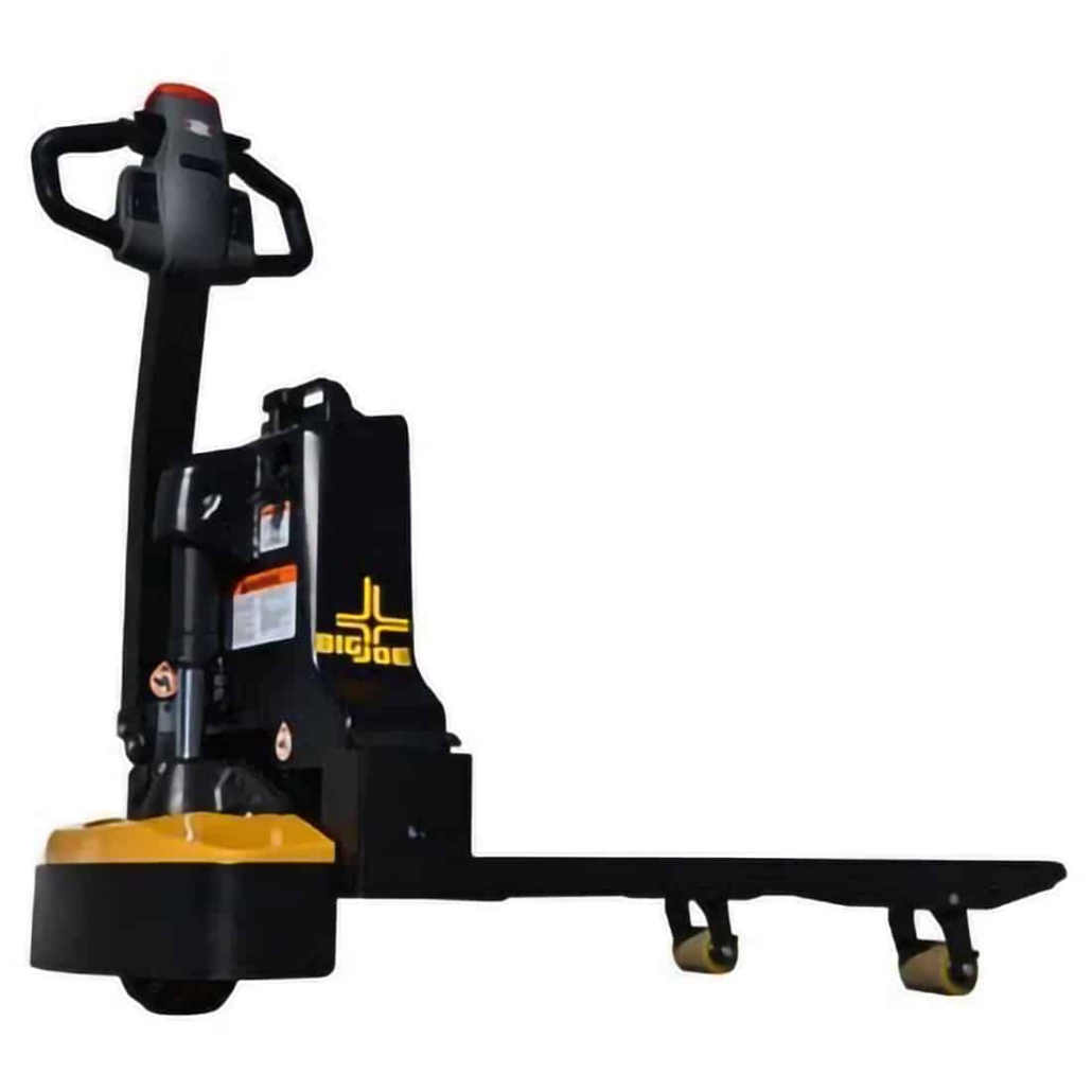 Our 3,300 lb capacity fully electric pallet truck is the most compact and maneuverable product in its class. When coupled with an optional additional easy exchange Li-ion battery, you can achieve infinite duty cycles thanks to their rapid recharge rate and extended run time!