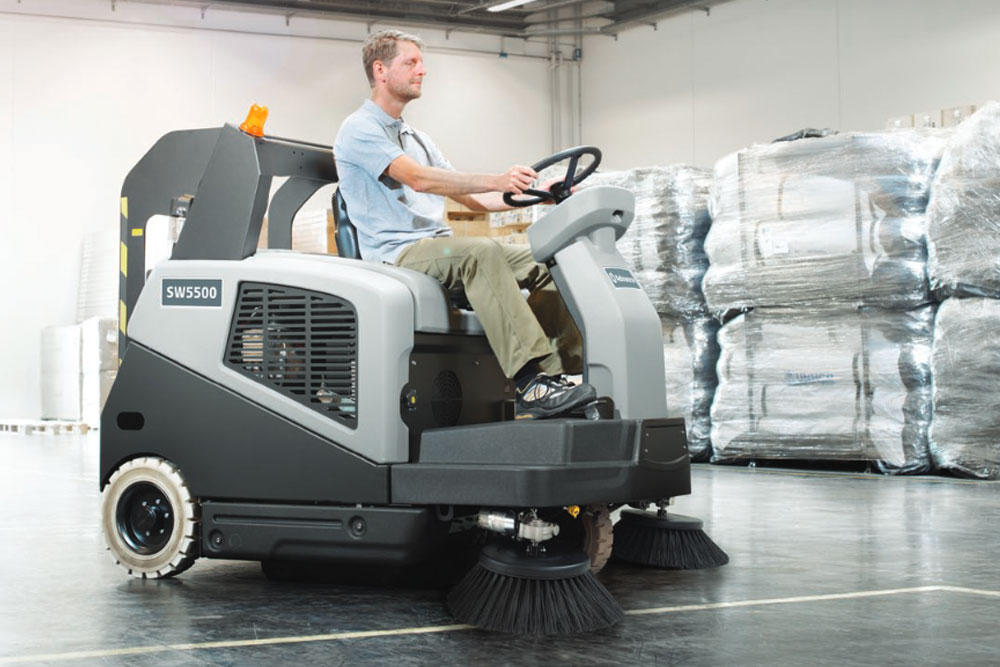 Advance takes innovative floor sweeping to a new level with the latest addition to the line: the Advance SW8000. With the widest main broom in this class at 50 inches, plus dust control dual side brooms, you’ll get an amazing 77-inch sweep path, giving you an increased productivity of more than 70 percent than sweepers that control dust only at the main broom. The SW8000 is easy to operate, with One-Touch™ controls and a single foot pedal to control direction and activate brooms and dust control. Operator safety is addressed with Clear-View™, an offset hopper that allows the operator to see the front and side without having to lean outside the frame, and a hopper safety arm controlled by the operator.
